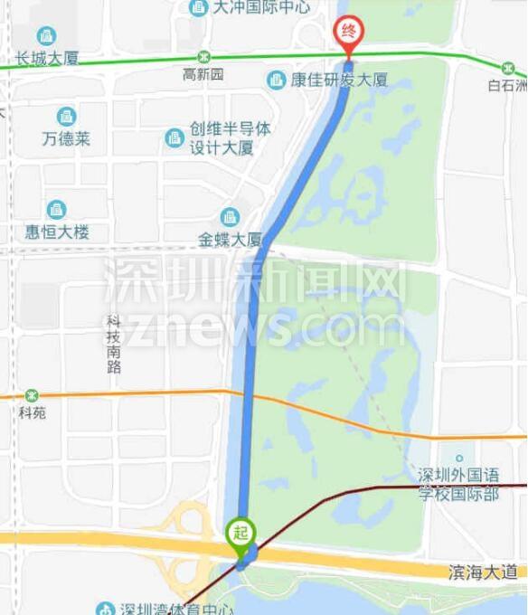 由于周六日深圳湾公园不让进,而从蛇口新街到滨海沙河西立交桥这段路在公园内,该网友只能改从望海路骑至滨海沙河西立交,当准备由滨海沙河西立交骑行到深南沙河西立交时,又被告知这条骑行道同样在深圳湾公园管辖范围内,不准进。最后,网友只能带着孩子沿沙河西路极其狭窄且危险的小道骑行到深南大道,再接着骑到深南沙河西,最终才到达大沙河公园(大沙河东侧的沿岸)。