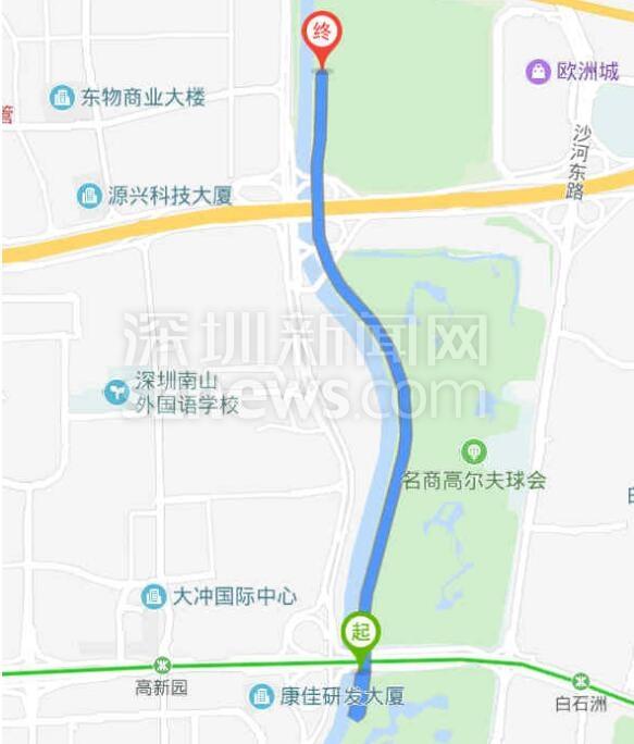 百度地图中滨海沙河西立交到深南沙河西立交的骑行路线