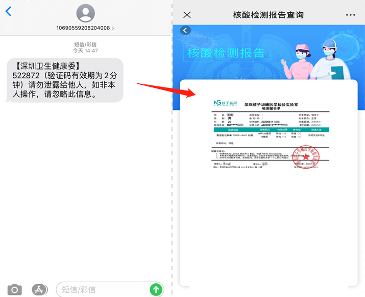 ④进行短信验证后,即可查询15天内(从5月11日起)的核酸检测报告