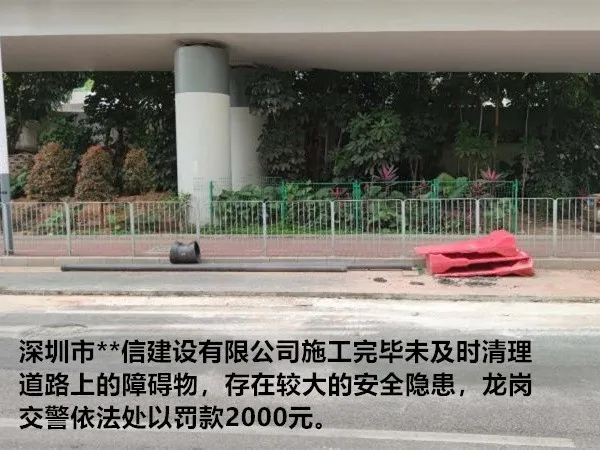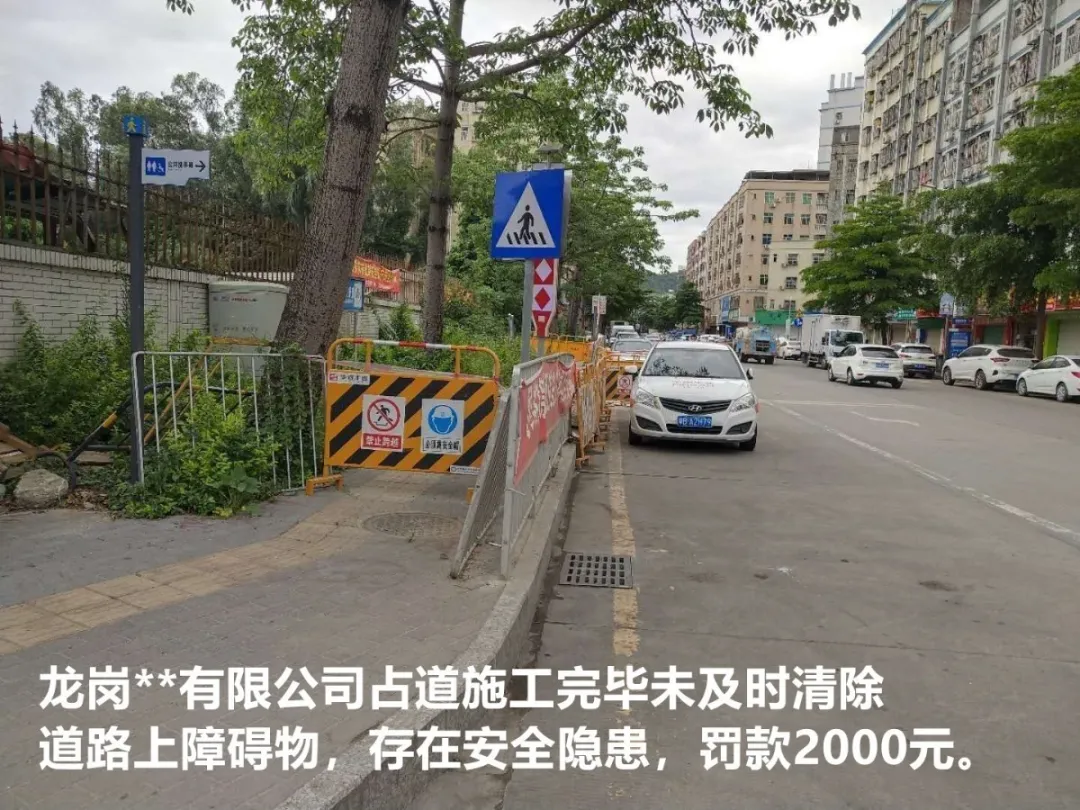 对该施工单位在横坪连接线路段占道施工导致人行道不连贯、机非冲突,存在较大交通安全隐患的行为,龙岗交警依法处罚10000元并责令立即整改。