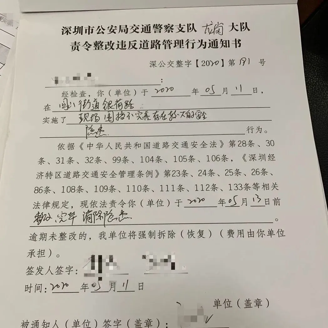 5月12日上午,执勤民警在巡查至平湖街道凤安路路段时发现一施工单位未经审批擅自占道作业,存在较大的交通安全隐患,随即叫停施工并责令立即整改。