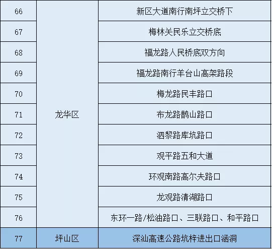 暴雨重点易积水路段(点位)